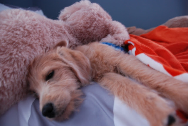 Howard obliged and slept soundly on William's bed while we put together puzzles and played superheroes next door in the toy room. We laughed because we could barely see him and thought he looked like